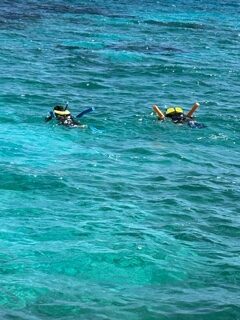 Huffing and puffing through my snorkel, I made it to the reef, saw a few beautiful fish in and around the reef as I became more exhausted. At this point, fear gripped me as I wondered if I had the strength to make it back to the boat, so I immediately forgot about the wondrous sea life, made a U-turn and started back. I was in the water for about 30 minutes with John not far behind me. Now, I am in terrible shape, but John is very fit, and he, too was exhausted by the experience.